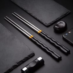 Avec un design épuré et moderne, ces baguettes chinoises en fer feront très classe sur la table à manger avec des assiettes en pierre naturelle ou de la vaisselle en porcelaine. Cette paire de baguettes chinoises conçue en acier inoxydable comporte des poignées en fibre de verre. Son manche grippant vous facilite la vie et permet de pincer les aliments plus aisément. Quelques sushis, un bol de nouilles sautées, une soupe aux légumes, un peu de riz, du porc au caramel, le célèbre tofu et l’on obtient un excellent repas chinois. Bon appétit !