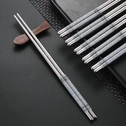 Ces baguettes en acier inoxydable passent au lave-vaisselle sans aucun souci et ne rouillent pas. Livrable par paire ou par lot de 5 paires, ces couverts en inox feront fureur auprès de vos amis lors des repas de famille, des buffets de mariage ou autre en-cas gourmand.