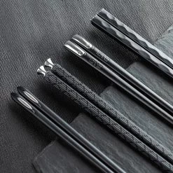 Cinq formes différentes pour cinq paires, c’est ce que vous propose cet assortiment de baguettes chinoises haut de gamme. Pratiques et faciles à prendre en main, elles ne craignent ni l’eau ni l’air, ils résistent à la chaleur et ne la transmettent pas. Autrement dit, ce joli paquet de baguettes chinoises pourra vous accompagner partout où vous allez et tout au long de votre vie. Pour le petit-déjeuner, les soupers à la maison ou même les pique-niques en pleine montagne, ces couverts sont intemporels alors on les utilise pour tout et sans modération !