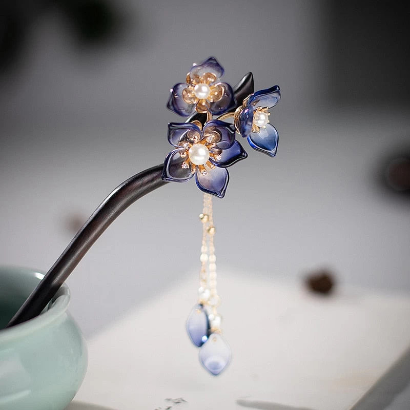 Bâton Chinois Pour Cheveux Ornés De Fleurs