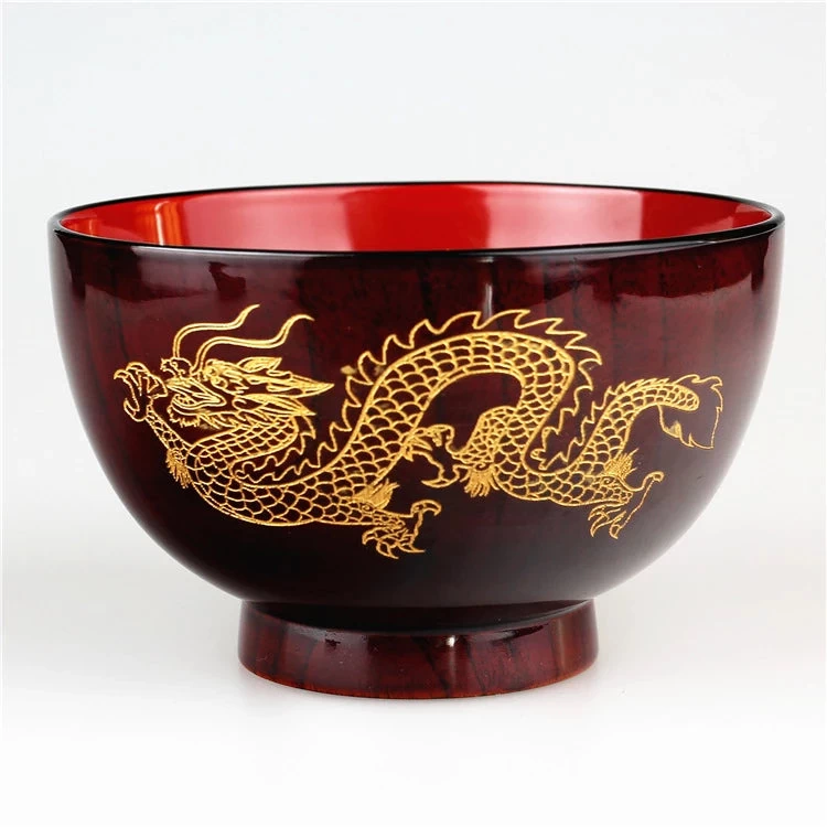 Quittez les sentiers battus, remontez le temps et venez vous perdre à travers la chine antique avec ces jolis bols chinois décorés avec des dragons. Sculptées, polies et lustrées à la main, ces pièces de vaisselle se composent de bois naturel. Elles affichent une sublime apparence, une finition laquée impeccable qui donne aux récipients une teinte brillante. On adore le contraste créé entre l’arrière-plan et les dragons dorés.