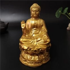Apportez une touche de zénitude et composez une décoration d’intérieur relaxante avec cette magnifique statuette de bouddha chinois assis. Nous avons le choix entre une couleur dorée ou une teinte grise avec sa finition vieillie. La figurine représente un bouddha assis en position du lotus, avec la main droite levée.