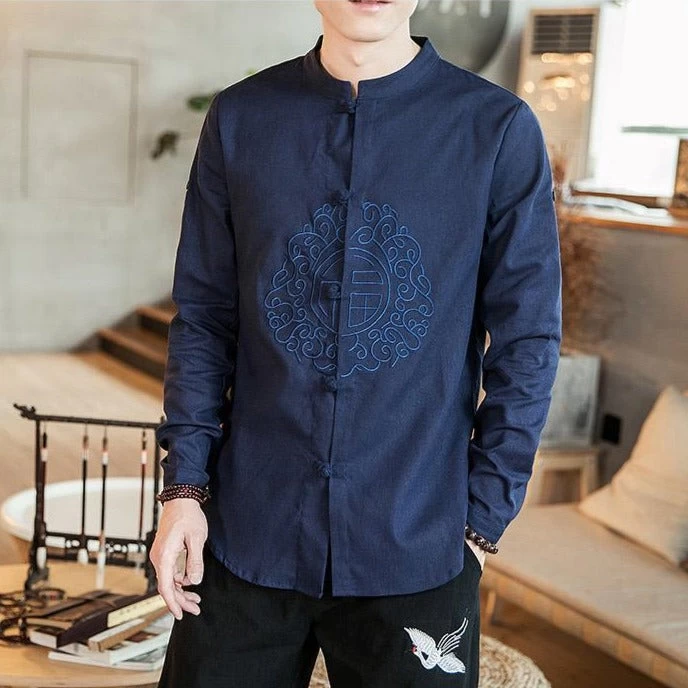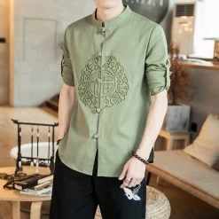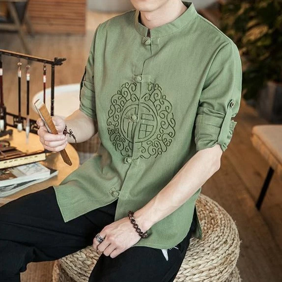 Chemise Chinoise Pour Homme en Coton avec Manches Ajustables