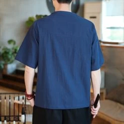 Avec de sublimes motifs représentatifs et une coupe ample confortable, cette chemise chinoise à manches courtes vous offrira un look habillé et décontracté à la pointe de la mode asiatique. Une chemisette de grande taille comme celle-ci conviendra sans soucis à toutes les morphologies. De plus, ces petites manches larges vous conféreront une grande liberté de mouvement. À revêtir aussi bien en été qu’en hiver !
