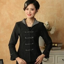 Ce chemisier chinois moderne propose une coupe légèrement moulante contrairement aux chemisiers plus anciens où l’on retrouve plus souvent une coupe ample. Autre différence, celui-ci fournit un col rond et non un col mao pourtant plus typique, inhabituel pour un chemisier chinois. Audacieux direz-vous? Non, moderne !