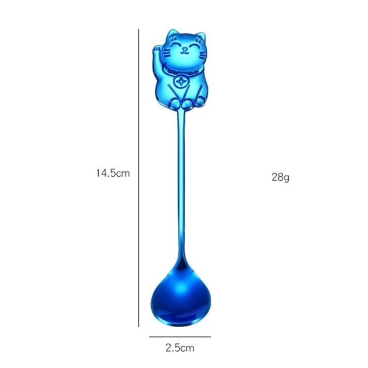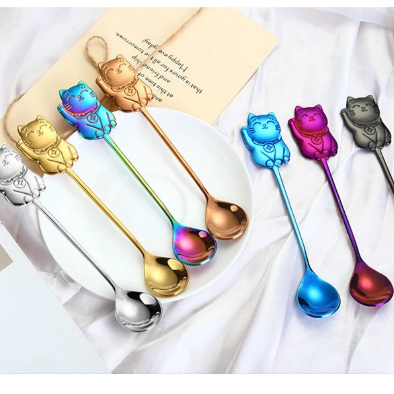 Cuillère Chinoise Inox En Sept Couleur Orné D’un Maneki-Neko