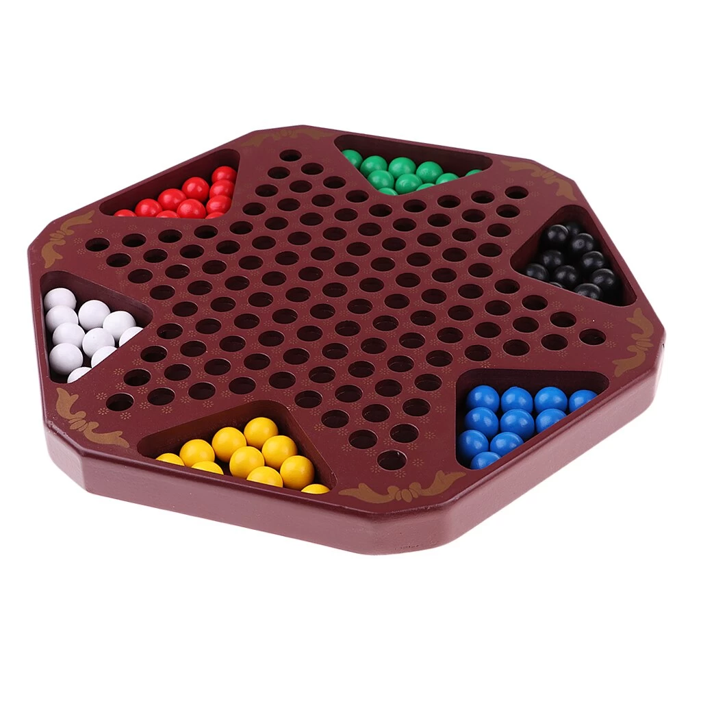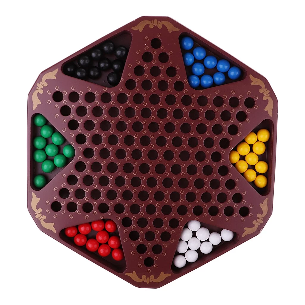 Vous êtes à la recherche d’un cadeau surprenant ? Ce jeu de dames chinoises est parfaitement adapté à votre requête. C’est un exemplaire grand format qui mesure 33 cm de longueur, une taille conséquente mine de rien. Le tablier de jeu possède ses 121 trous habituels. Cependant, chaque zone de départ et chaque zone d’arrivée correspondant aux différentes branches de l’étoile sont bordées par des compartiments supplémentaires. Ils serviront à ranger les jetons à la fin de votre partie.