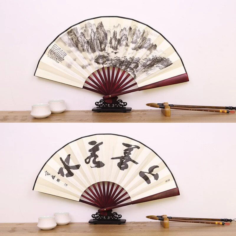 Grand Éventail Chinois Avec Armature Pliable Et Rivure En Inox