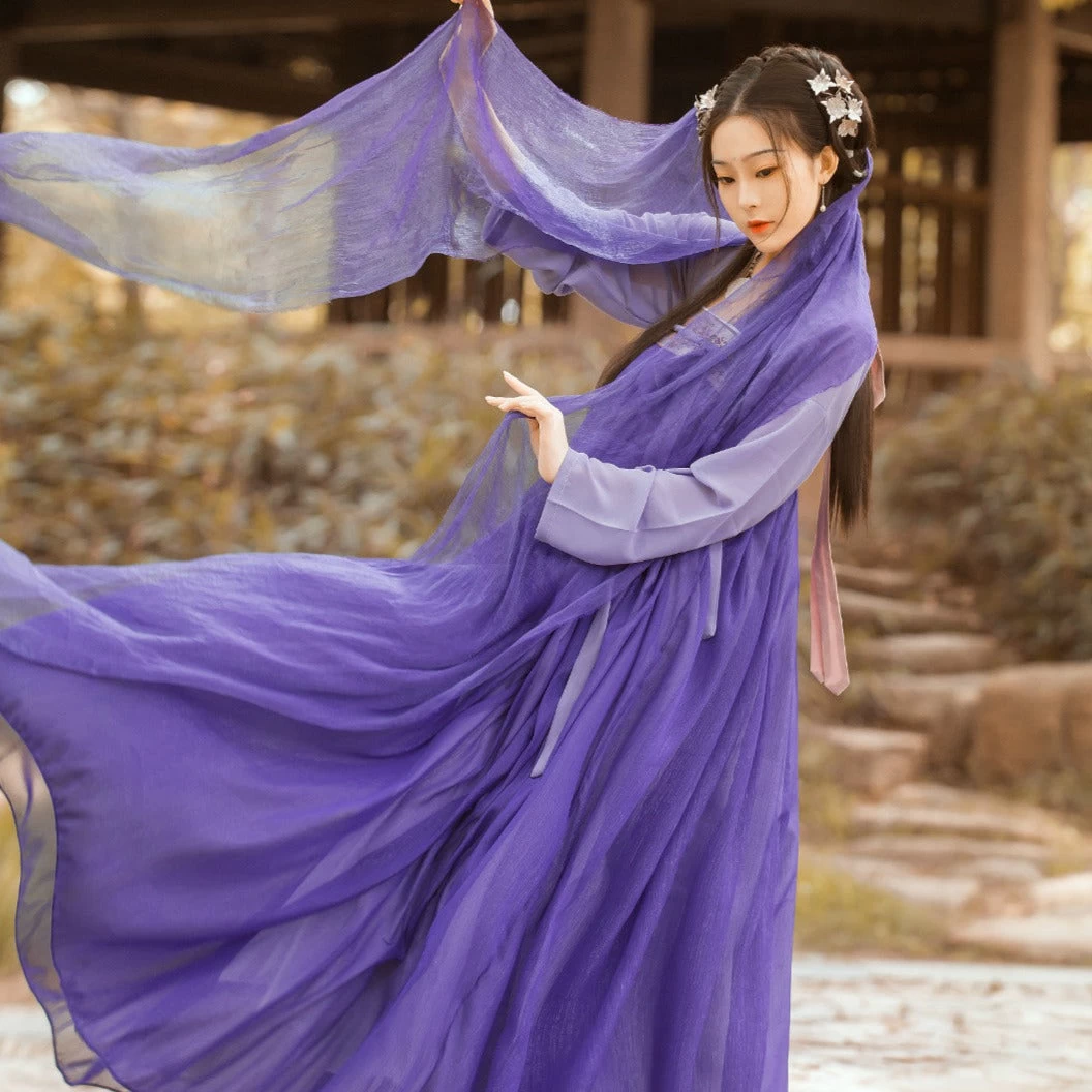 À la fois léger, ample et fluide, ce sublime hanfu violet nous propose tissu et voiles à profusion, un moyen charmant d’offrir du prestige à sa démarche. Sa couleur violet prune tout à fait originale donne une apparence encore plus charmante et féminine à ce vêtement traditionnel chinois. Vous pourrez le porter en toutes occasions et grâce à sa taille il conviendra parfaitement à toutes les morphologies. Pour des shootings photo, une soirée à thème, un mariage ou tout autre type de cérémonie, enfiler ce hanfu, c’est s’offrir le privilège d’être la plus élégante en toute circonstance.