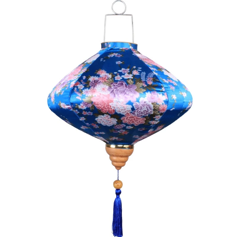 Lanterne Chinoise Bleue En Soie Parée De Motif Floral