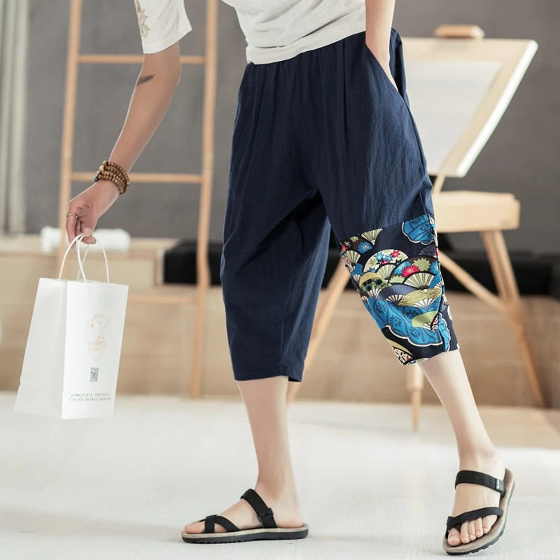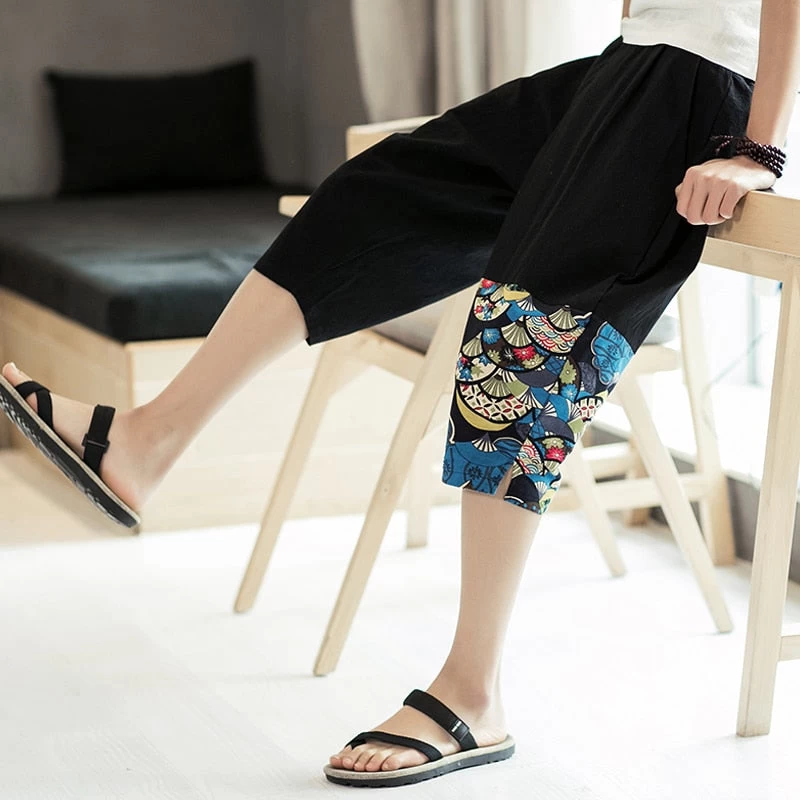 Rester au top de la mode masculine, c’est possible en portant ce pantacourt chinois. Ce bas pourra vous suivre de partout et durablement avec ses coutures renforcées puis la qualité exceptionnelle de son tissu. Il possède des mailles légèrement extensibles, bien respirantes et douces comme le coton pur. Son détail original ? C’est la petite portion de textile coloré et griffé d’éventails, un superbe ornement qui colle idéalement à l’Empire du Milieu.
