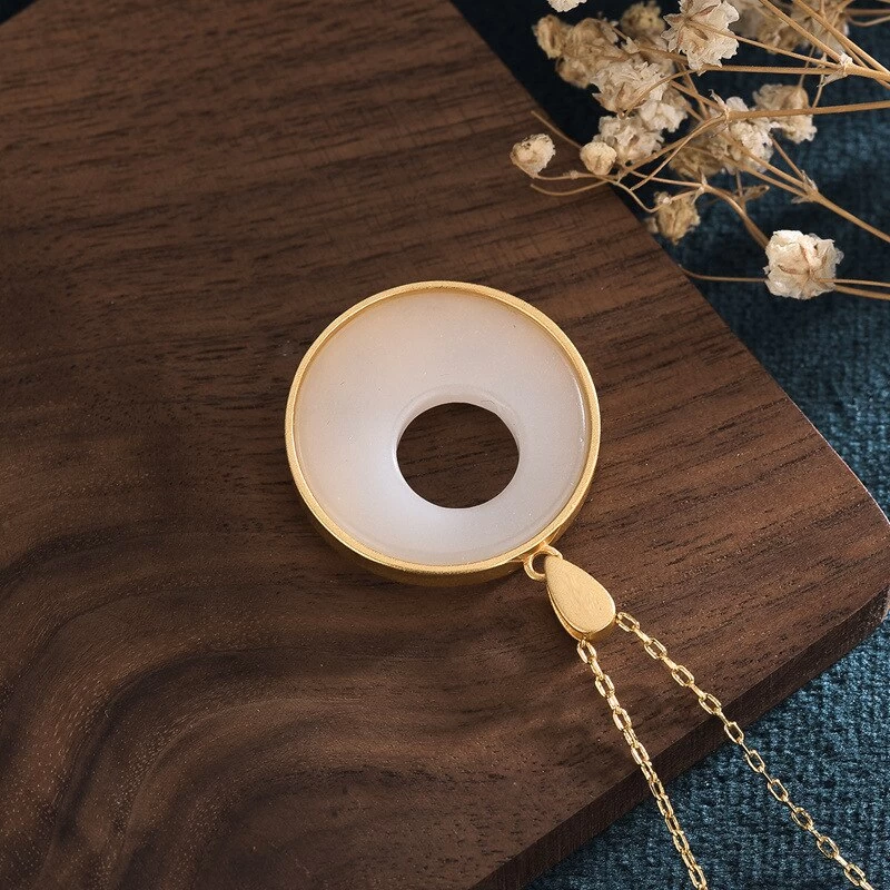 La pureté et la délicatesse d’une pierre naturelle de jade blanc. L’éclat doré, incandescent et inaltérable d’un alliage de qualité. La finesse et la minutie de gravures et de détails tout à fait charmants. C’est la somptueuse alliance que vous offre notre pendentif pi chinois.