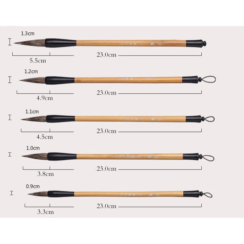 Montrez toute l’ampleur de votre talent d’artiste avec cet assortiment de pinceaux de calligraphie chinoise ancien. L’ensemble comporte 5 blaireaux de diverses tailles et sera pratique pour jongler entre les différents styles ou jouer avec les épaisseurs. On peut opter pour des lignes fines et épurées, des idéogrammes plus imposants ou une typographie régulière. Grâce à ce lot de brosses, les professionnels pourront écrire le mandarin sans difficulté, les débutants quant à eux pourront s’initier et apprendre l’art de la calligraphie confortablement installé dans la maison.