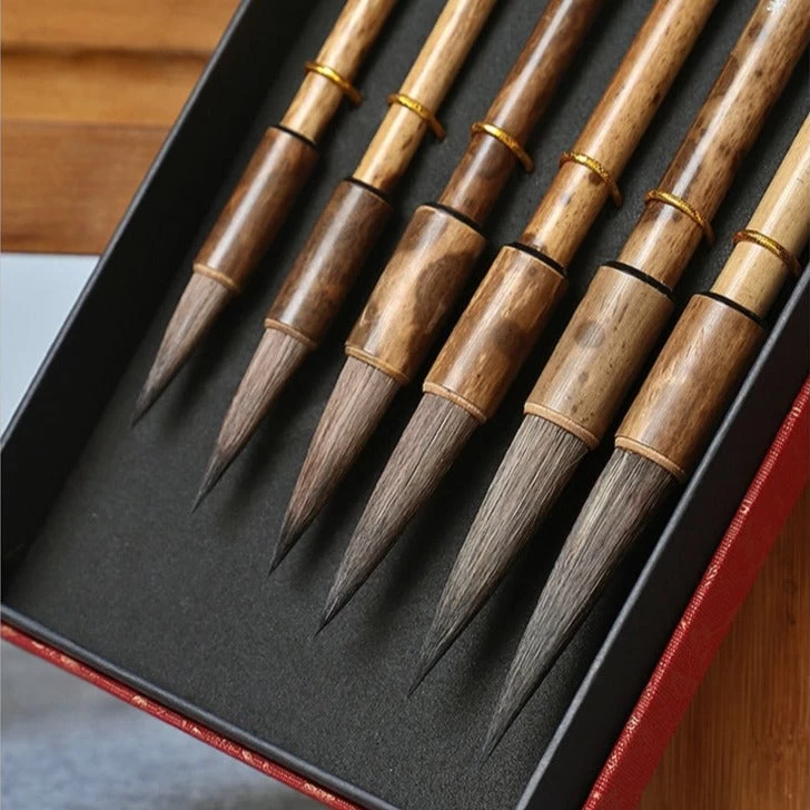 Laissez tomber les stylos à plume, les feutres et les crayons pour un sublime assortiment de pinceaux chinois de qualité. Avec six tailles de garnitures en poils naturels et non en fibres synthétiques, pour six brosses différentes, ce coffret permet tout type de typographie. Grâce à lui, on peut faire une belle écriture régulière, des caractères plus épais ou au contraire réaliser des idéogrammes plus fins selon nos envies et l’œuvre recherchée.
