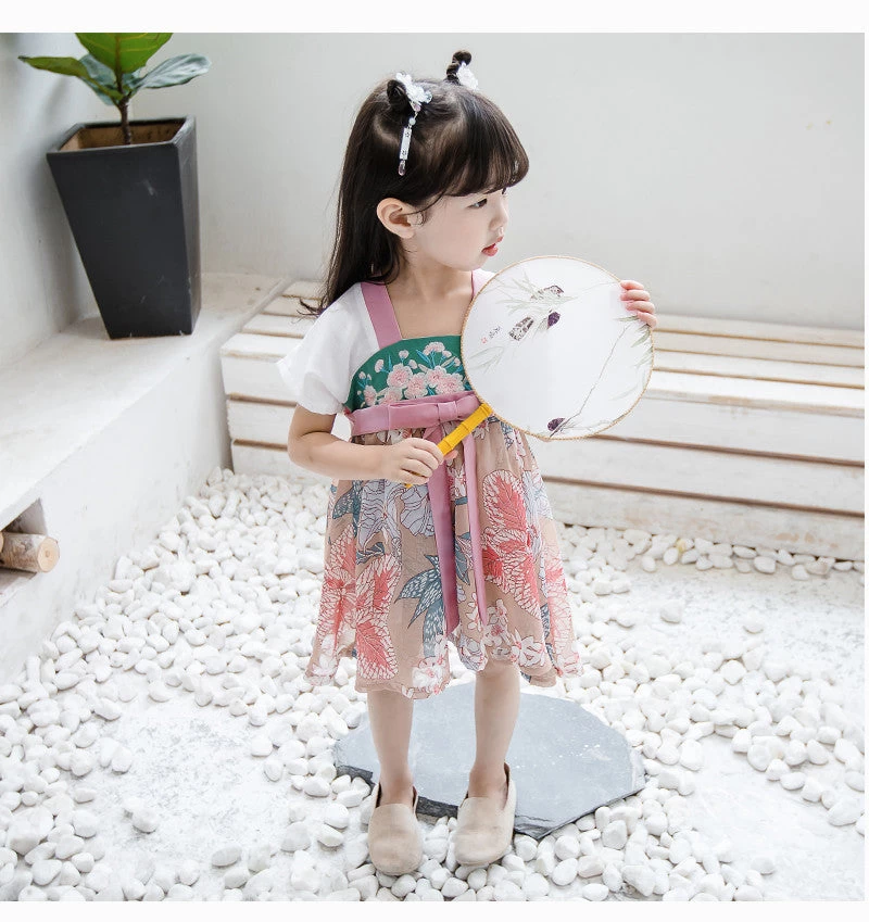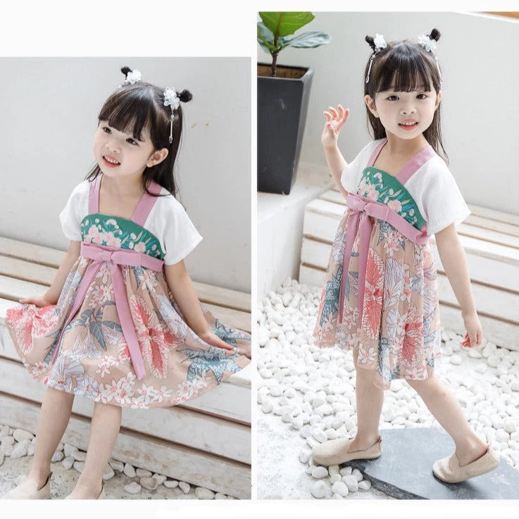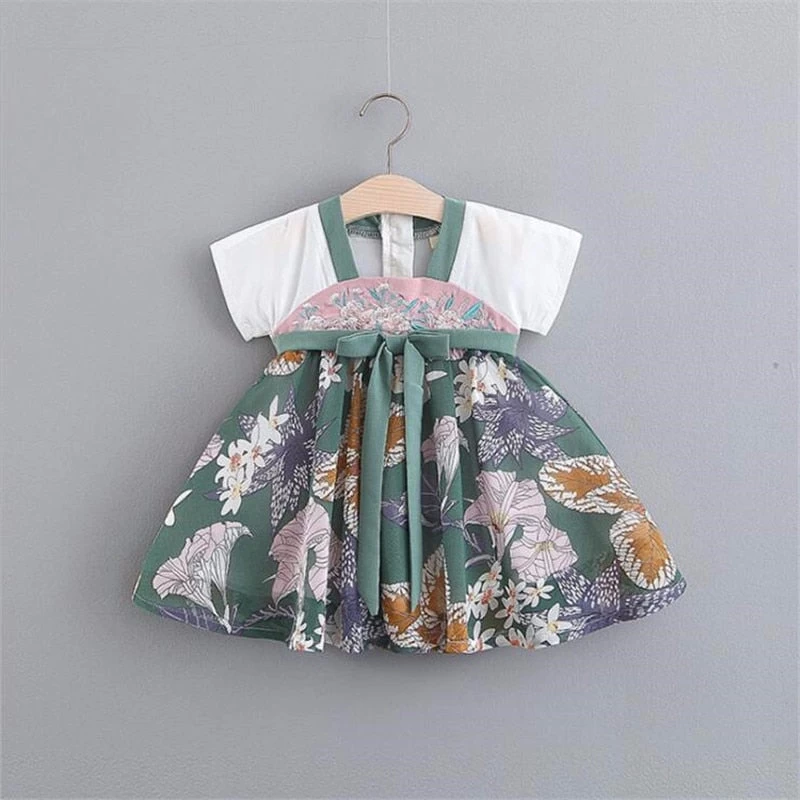 Robe Chinoise Bébé Fille Brodée Et Imprimée Avec Ceinture À Nouer
