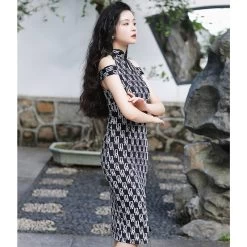 Les motifs fleuris de cette robe midi blanche sont parfaitement mis en valeur par le tissu de soie. On entrevoit d’ailleurs un joli jeu de transparence entre le vêtement et la doublure, qui confère à ce qipao un style résolument moderne. Qu’attendez-vous pour l’adopter ?