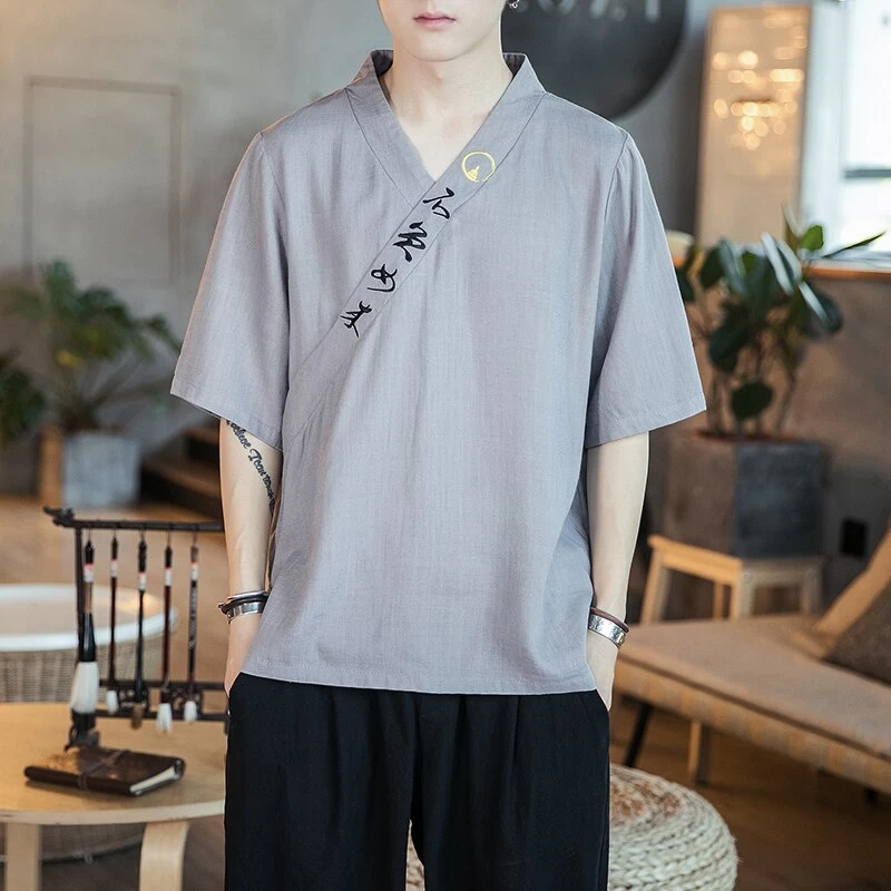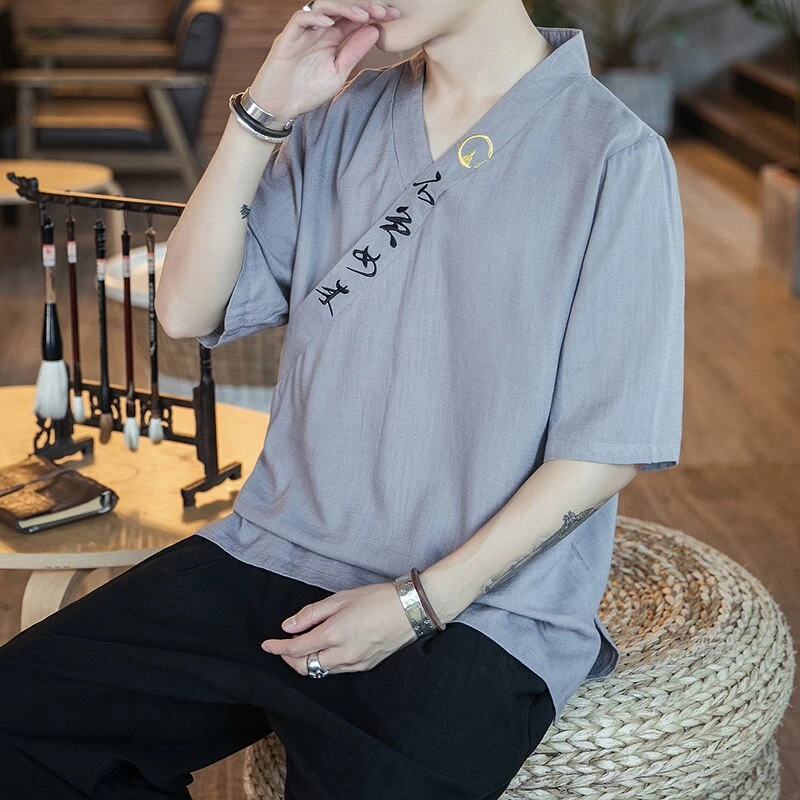 Pour s’habiller en suivant les mœurs vestimentaires asiatiques, rien de tel que notre t-shirt chinois traditionnel. Sa belle étoffe est tout confort et présente un textile légèrement plissé. Le maillot se pourvoit d’une bande de tissu disposée en diagonale sur le torse. Celle-ci est décorée de logogramme mandarin et lui donne un aspect faussement croisé, comme s’il s’agissait d’une coupe kimono habituelle.