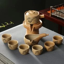 Théière Chinoise en Terre avec déversoir et six tasses à thé