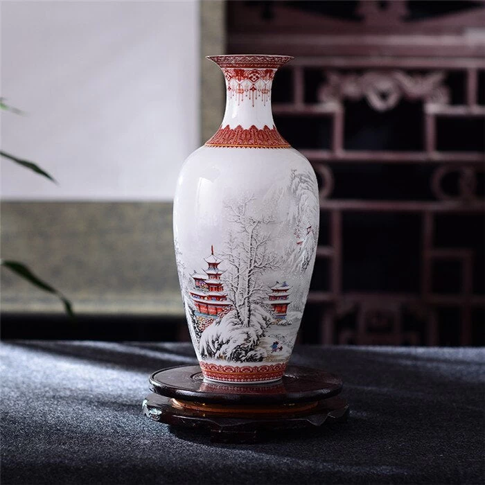 Vase Motif Chinois Rouge Et Blanc En Argile