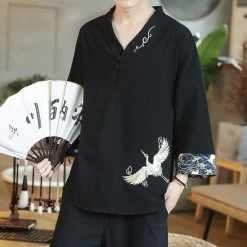 L’art chinois est intemporel et se traduit bien sur tous les supports. Notre veste chinoise bleu marine en est une preuve. Ses teintes bleues, très sombres, mettent en avant de superbes décors brodés, des vagues et des oiseaux de couleur dorée. Cette veste en coton ne possède qu’un bouton à l’avant. On la porte ouverte ou fermée à la manière d’un kimono avec le col croisé. Quoi qu’il en soit, vous serez au-dessus de la mêlée en optant pour le style oriental qu’elle vous apporte. Elle vous protègera aussi des légères brises.
