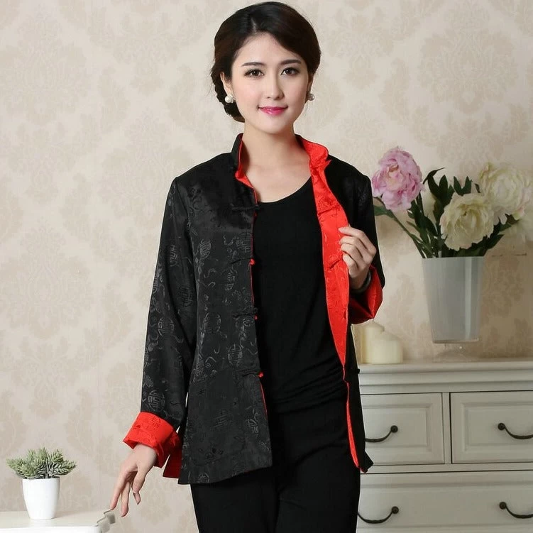 Veste Chinoise Pour Femme En Tissu De Soie Bicolore Et Réversible