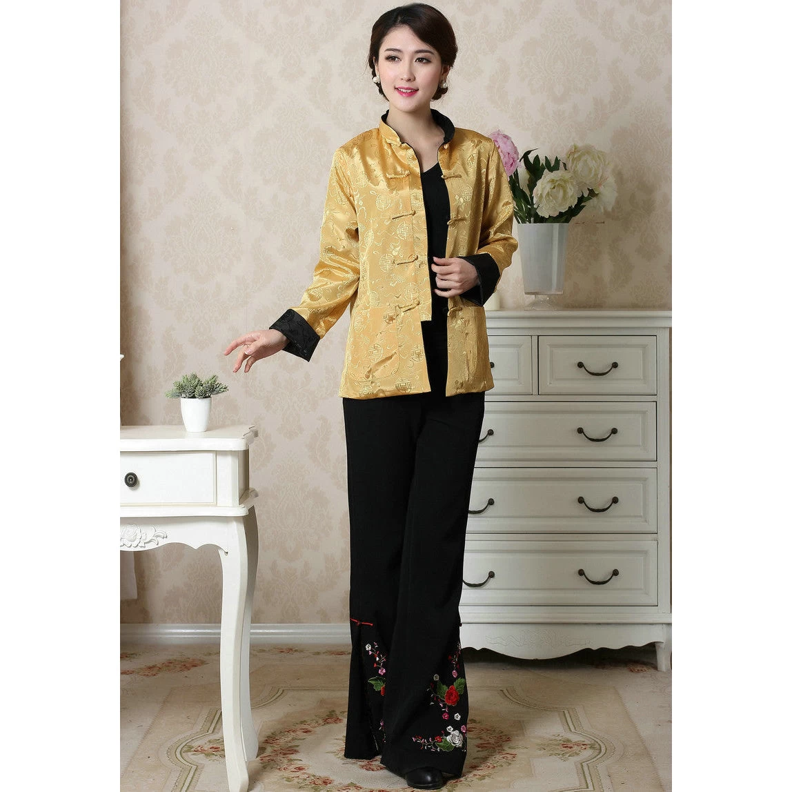 C’est sous de nombreux coloris que cette veste chinoise pour femme en soie vous est proposée. Son intérieur et son extérieur sont, dans tous les cas, de deux teintes différentes, c’est une petite touche originale qu’on adore. Ses formes et ses motifs orientaux en font une pièce de mode exotique qui ravivera toutes vos tenues.