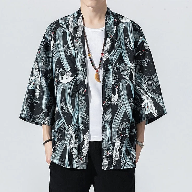 Veste Style Chinois Homme Manches Trois Quarts